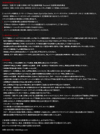 万が一、持ち込みの事実が発覚した場合は、所轄警察への届出と共に、以降のライヴやイベントへの出入り禁止処置とさせて頂きます。