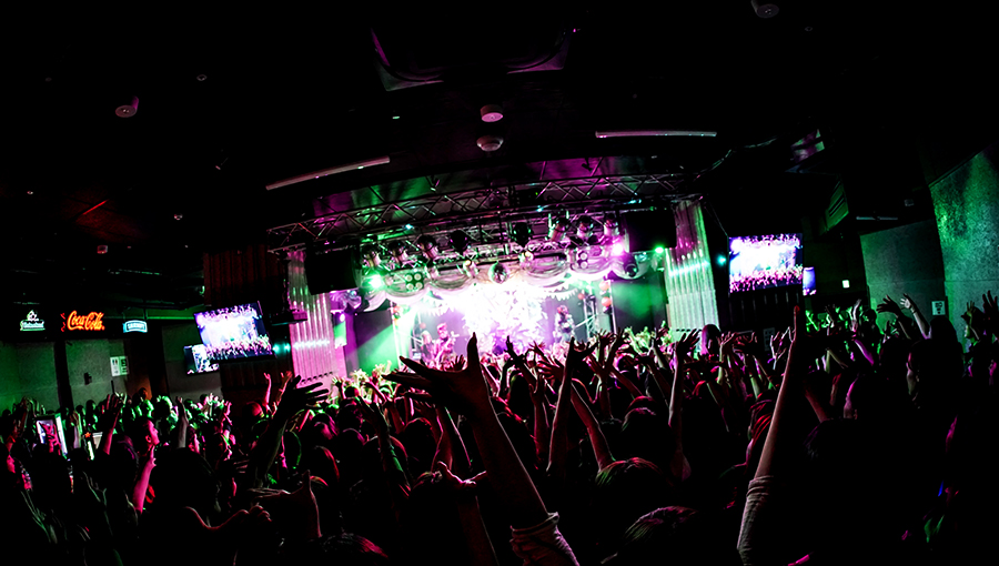 さぁ、ふたたび熱狂の住人へと塗り替えるが如く、Dは攻めゆく姿勢のもと「狂人舞踏譜」を通し、重厚な音を突き刺すように演奏。歌や演奏が進むごとに上がる熱。駆ける演奏に触発され、頭を振り乱し、想いを捧げゆく観客たち。誰もが緩急描いたドラマ曲を彩る団員となり、次々と繰り出される演目を通し、ともに日常のカタルシスを解き放っていった。