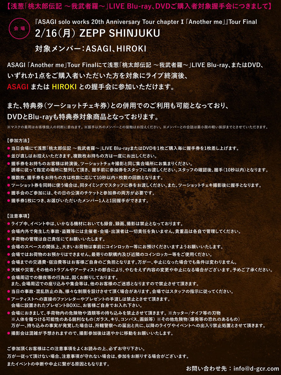 【浅葱 単独巡業 二○二五「桃太郎伝記 ~我武者羅~」千秋楽 二○二五年二月十二日 ZEPP SHINJUKU ON AIR決定!!】